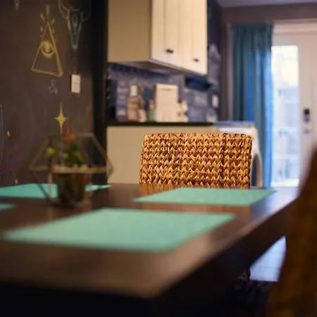 La villa Hostwise Stays - Chalk Art House - Chalkboard Wall, Private Parking, Patio dispone di una cucina completamente attrezzata in cui potrai trovare una lavastoviglie, una macchina per caffè e tè e utensili da cucina. Gli ospiti possono cenare al ristorante Elk's Lodge, situato a 450 metri. La fermata dell'autobus più vicina è East Ohio St at Cedar Ave, abbastanza vicino al luogo.
